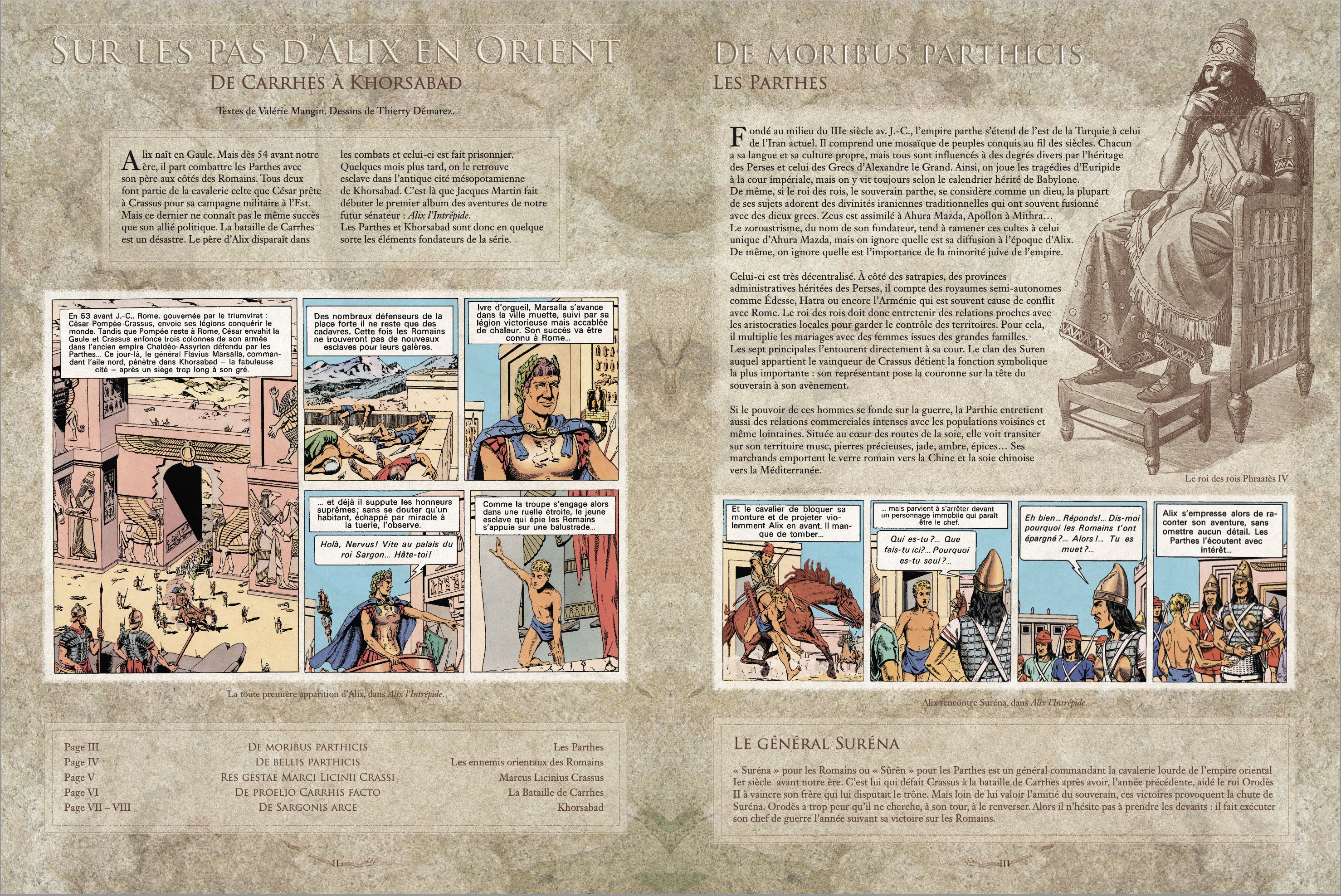 Figure 6. Extraits du cahier historique final du tome 11, édition premium (« Sur les pas d’Alix en Orient »), avec les titres en latin ; Alix senator, t. 11. L’Esclave de Khorsabad de Valérie Mangin et Thierry Démarez.