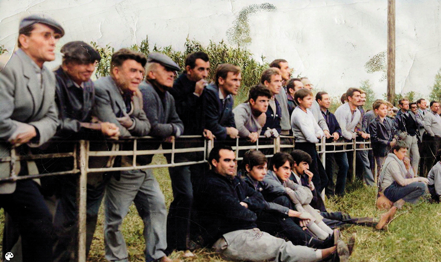 Figure n° 3. Les spectateurs alignés derrière la main courante du stade Verdet-Kléber de Villelaure en 1965