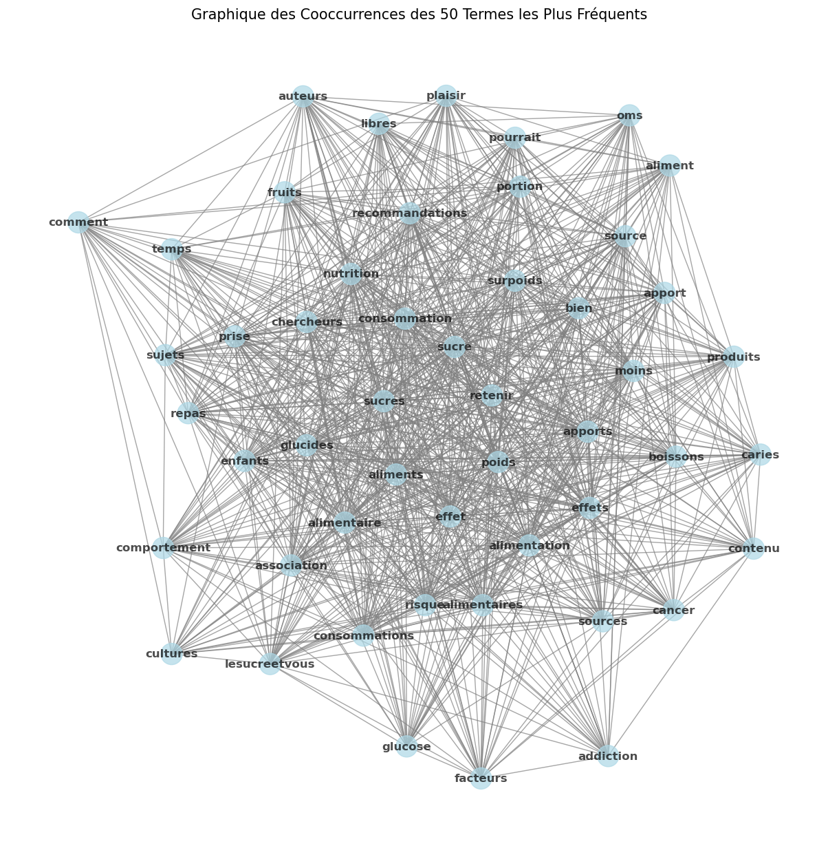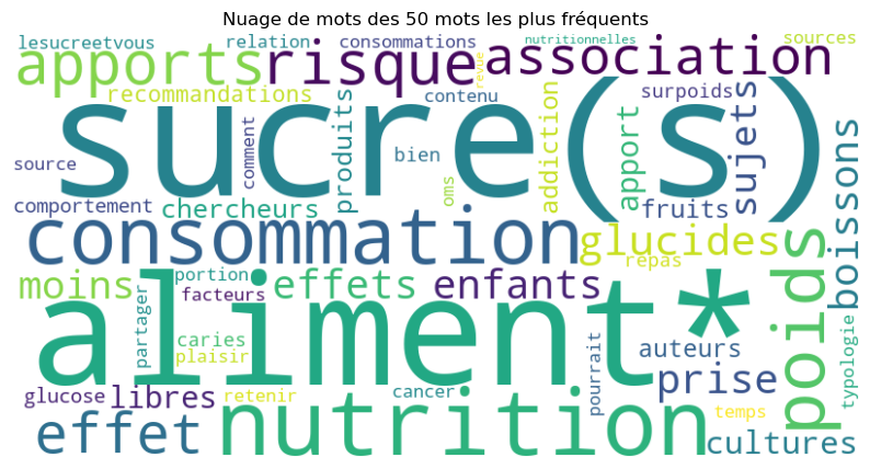 Figure 5. Les 50 mots les plus fréquents dans le contenu des pages du site Cultures-sucre pour la requête « poids, aliment* et santé ».